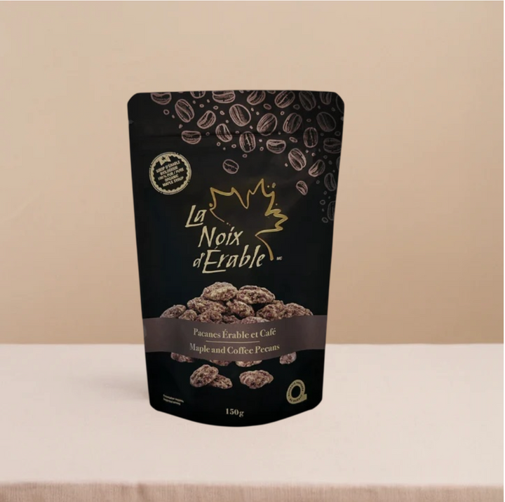 Imaginez la douceur riche de l’érable qui rencontre l’arôme envoûtant du café fraîchement moulu : une alliance irrésistible qui sublime la tendresse de la pacane. Entre le sucré et l’amer, le croquant et le fondant, c’est un équilibre raffiné qui séduira aussi bien les amateurs de café que les simples épicuriens en quête d’une expérience gourmande et sophistiquée.